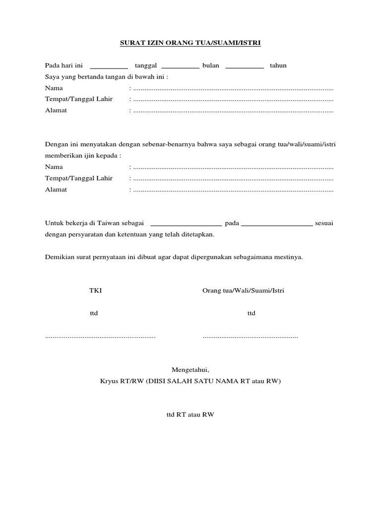 | Lihat Download Contoh Surat Ijin Orang Tua Suami Istri |